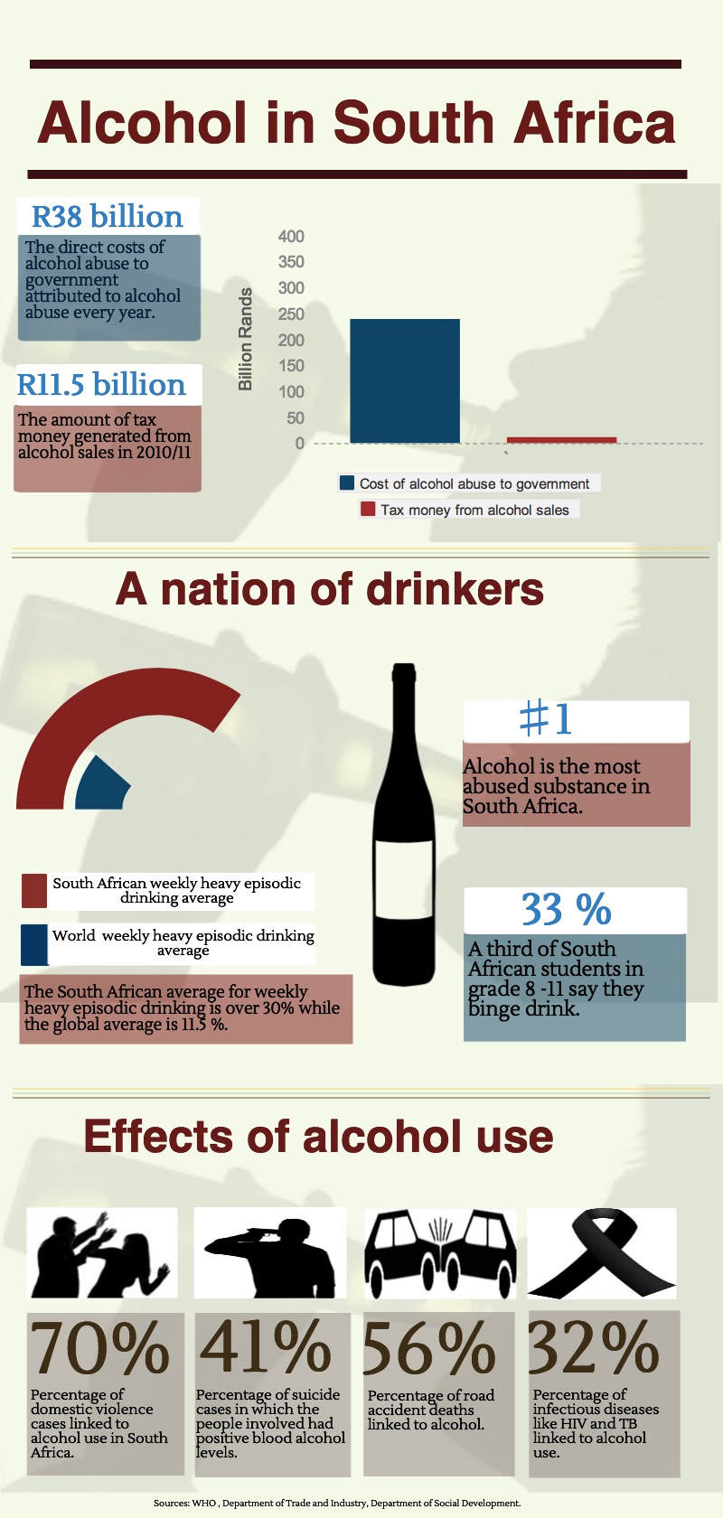 Some interesting statistics on alcohol and alcohol use in South Africa.